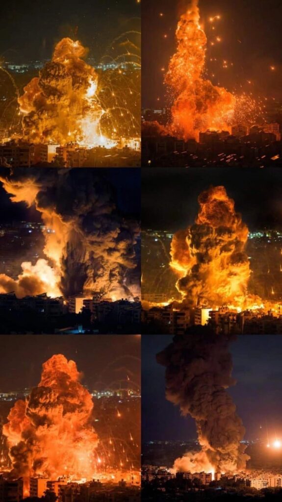 Deasupra Beirutului s-au ridicat coloane groase de fum, în timp ce forțele israeliene au lovit aproximativ o duzină de obiective în sudul orașului, avertizând anterior civilii prin intermediul rețelelor sociale. Potrivit armatei israeliene, atacurile au avut ca scop distrugerea capacităților de rachetă ale Hezbollah și au vizat în special zona Dahiyeh din sudul Beirutului. Israelul a subliniat că a luat măsuri pentru a limita impactul asupra civililor și a reafirmat acuzațiile potrivit cărora Hezbollah folosește populația civilă drept „scut uman”, acuzație pe care organizația libaneză o respinge.