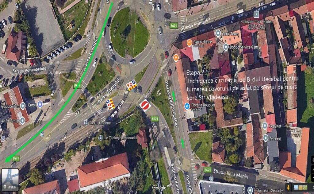 - Etapa II: Circulația pe sensul opus, dinspre Biserica Emanuel spre Parcul Bălcescu, va fi blocată, iar șoferii vor fi direcționați spre Calea Aradului, strada Traian Blajovici și strada Vlădeasa.