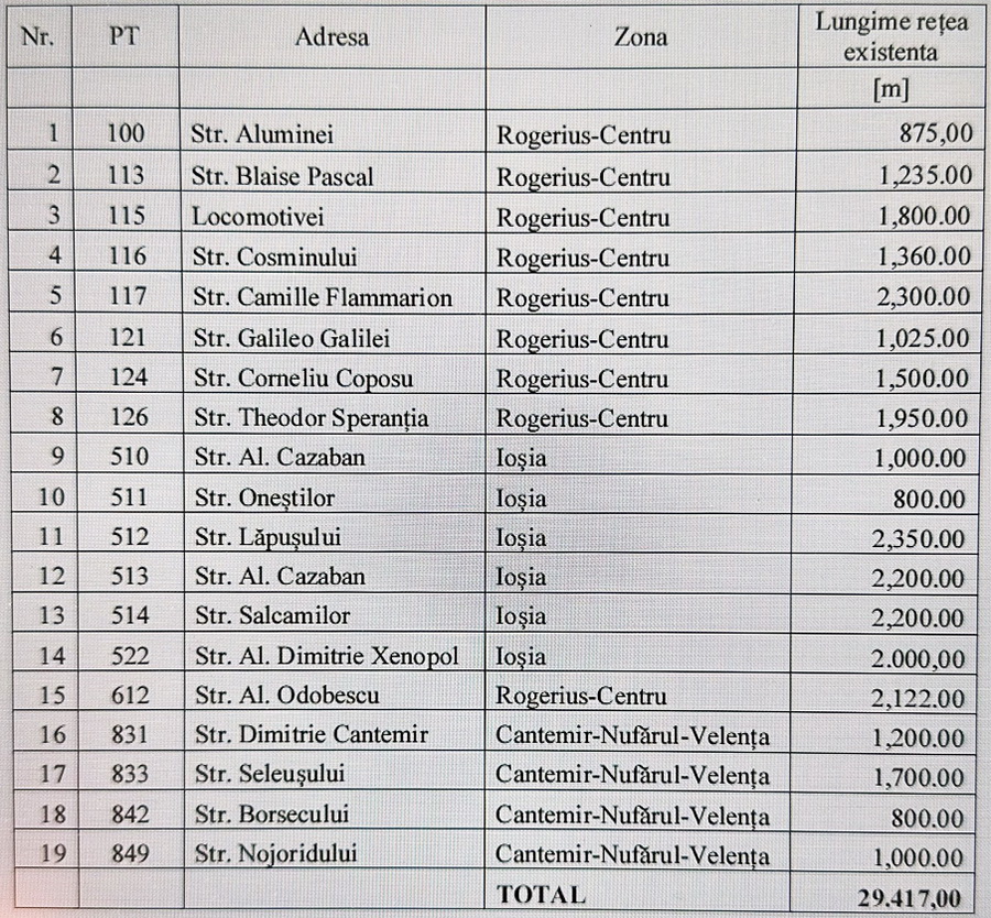Lucrările vor acoperi cartierele Rogerius, Ioșia, Dimitrie Cantemir, Velența și Nufărul, incluzând străzi principale precum Dacia, Decebal, Ștefan cel Mare, Grădinarilor și Leonardo da Vinci.